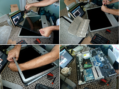 Look intimidating? I was afraid that even breathing hard in the general direction of that madness might blow those minuscule screws off the table to be lost forever, but Seth's pretty amazing. He made it through without even breaking a sweat. And it always helps that we have computer guru Paul on speed dial. We also took a bunch of computer-y stuff up to Boston with us a few weekends ago. (I'm surprised they let us on the plane with all those wires and such in our carry-on bags.) Days were spent picnicking and taking in art with the family. Nights were spent unraveling the mystery that is our computer. I'm not sure the mystery was every fully solved. They finally decided just to give it computer chemo and blast every possible bad thing (and potentially some good things too) and hope that the problem was eradicated. We have a new hard drive. Our external hard drive is being sent back under warranty. There were lots a lots of discs involved. Some parts came home from Boston with us. Some didn't. But so far we seem to have success.