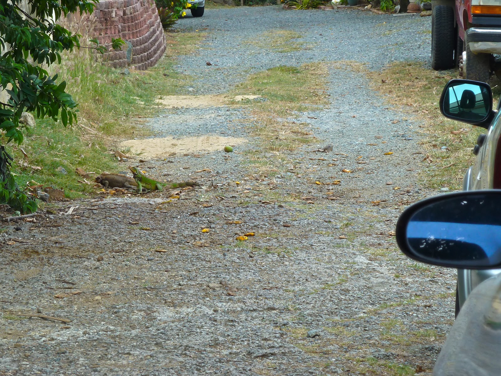 We're getting 4-6 ripe mangos a day off our tree. But another 2-4 drop off and roll down for these guys to feast on. Meaning every time I walk out to the car to go anywhere I have to deal with this.