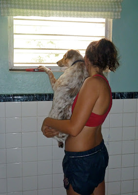 These guys were all over the place. Iguanas. Gross snarly prehistoric-looking iguanas. Finn is a pretty amicable dog. He befriends cats, moths, small children. You name it. But when it comes to iguanas he morphs into Cujo the killer dog. Only two stuck around for my picture but there were about twelve when I first lifted Finn to the window. Fighting over busted mangos that had fallen off the tree and rolled into the driveway.