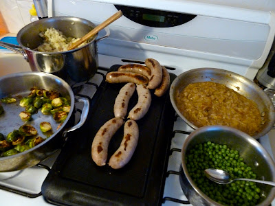 I was apparently one of only four people on Facebook that liked the opening ceremonies. But whatever. I liked them. James Bond with the (actual) queen, proper use of the word "twangling," cute kids in pajamas doing flips on hospital beds, guys wrapped in Christmas lights riding on bikes while flapping giant butterfly wings, and major fireworks. That's what I call a successful Friday night. Before the ceremonies, I spent two hours sweating my face off in the kitchen and putting together a serious English dinner.