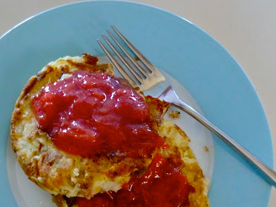 Everyone fell asleep at our party despite the coffee we brewed them. Except for me. My brilliant two cups of coffee kept me up to 2am. So I slept in on Saturday and then made use of our leftover potatoes to make a small brunch of potato pancakes topped with a rhubarb sauce Seth cooked up last week. Good fuel to spend my day cleaning the apartment from top to bottom. With entirely homemade cleaning supplies. Seriously. You could lick our bathroom wall. I dare you. Lick it.