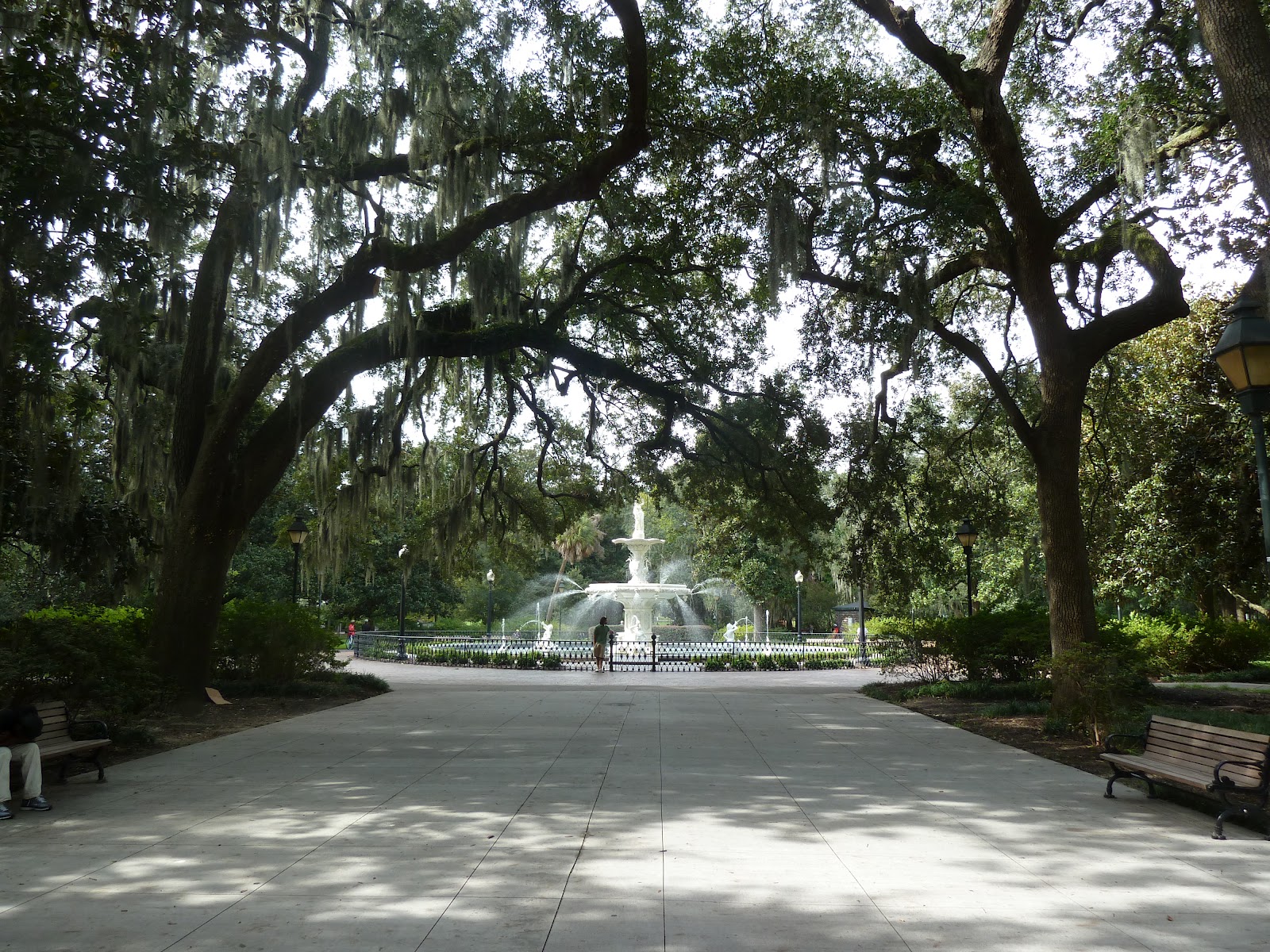 So now that you've seen what I walked around in Savannah in, let's get down to what I saw. Honest opinion, Savannah is gorgeous. We stayed in a petite queen room (read: the cheapest one) at the Marshall House and it was all the space we needed. The hotel is over 150 years old and still has all the original floors, doors, and ghosts. There was a complimentary breakfast every morning (not your average cereal and yogurt affair, although they did offer both cereal and yogurt) and wine tasting every night (can't say it was the best wine I've tasted, but I appreciated the effort). The hotel was also right on Broughton, pretty darn central in the historic district.
