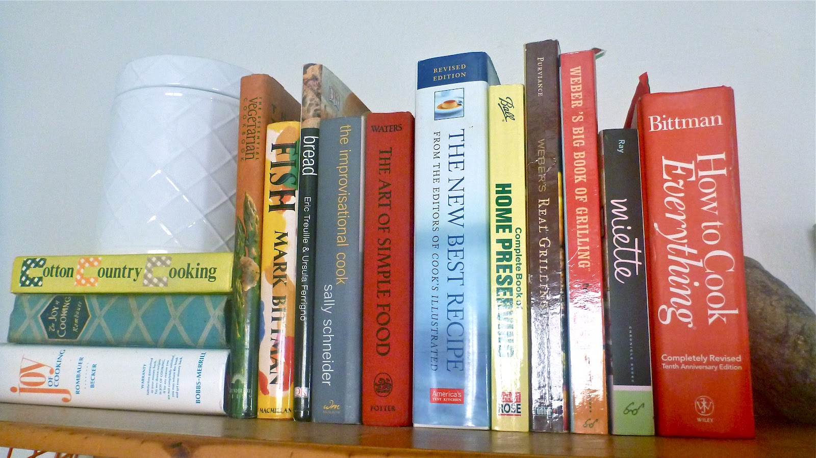 I've got a number of cookbooks on my shelf. I actually have a few more tucked away in a cabinet, but these are the ones I reference the most. Honestly, with food blogs being so easily accessible they're more than I need. But if I had to tell someone who was learning to cook from scratch (on a teeny tiny island with limited options) what to get here are my top picks:
