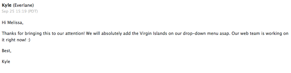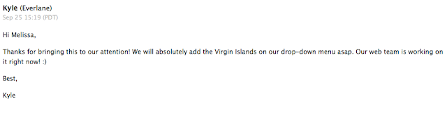 So if you end up making any Everlane purchases and have them shipped to your house your nearest post office on St Thomas you can thank Seth for that convenience. Isn't he great? And if you want to sign up for the site (it's one of those members only sites) I'd love if you used my invite code: