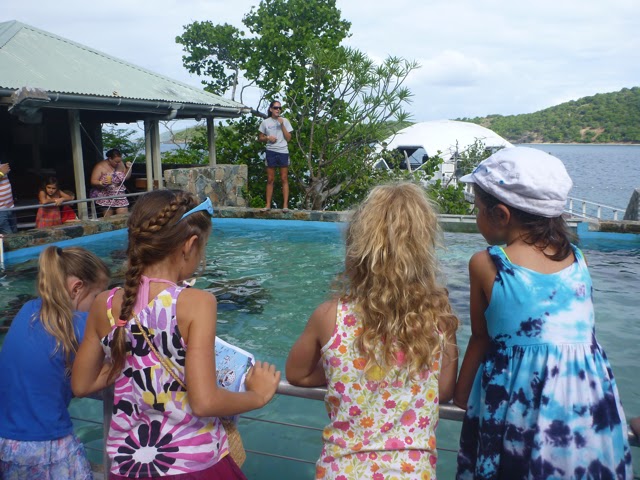 Little girlies watching the shark feeding |
