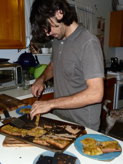 Now, we usually grill our pizzas. Jacking our oven up to 500F in our tiny open-air Caribbean kitchen makes for a very unhappy, sweaty, "I swear I'm never cooking again" Melissa. But we can crank the grill up to the same temp on the back porch and continue living a happy life. So why not go that same route for potato pizza? It's looks fabulous and golden brown right?