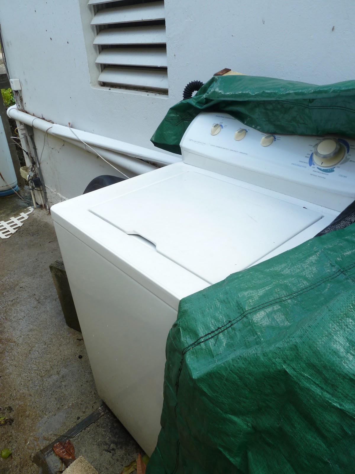So I know that in a land far far away, most washers and dryers are inside. On good days, when I close my eyes, I can still conjure up in my mind that fairytale land from somewhere in the back of my fuzzy memories. Now I do laundry in a tiny apartment on an island. Or, rather, outside of a tiny apartment on an island. Some people do have indoor laundry. A lot of people do not. In fact, a lot of people don't have any laundry facilities. I'm not saying this is how everyone on islands does their laundry, but I'm speaking from my personal experience of nearly ten years and two islands. Here's how laundry is done in my life: